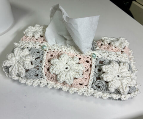 ティッシュケースを編みました。